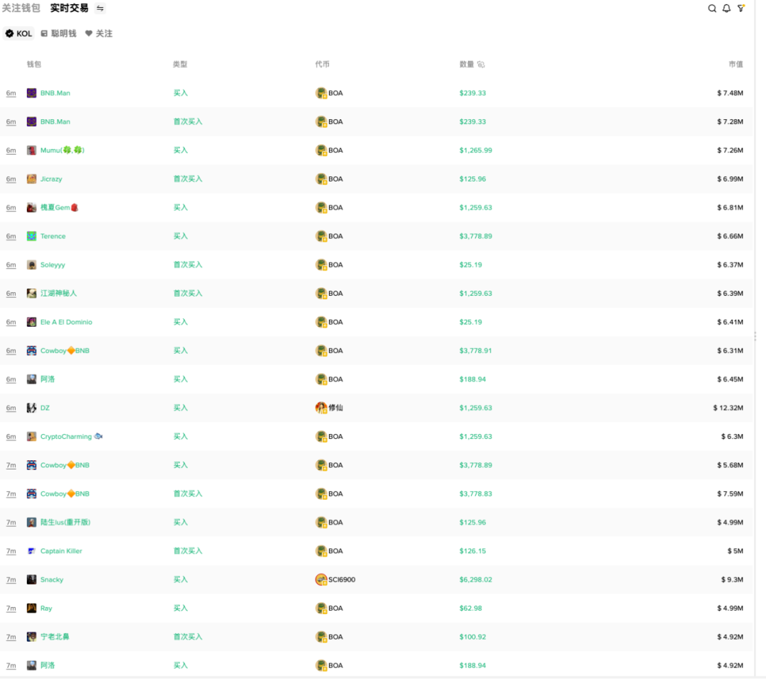 除了 Meme Rush 这样的扫链功能外,币安钱包还提供了决策工具——KOL监控列表。